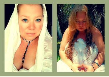 A Goddess Essence of Lady Grace Sacred White Goddess wrap. And a bottle of Goddess Essence Nectar of Lady Grace Anointment oil.